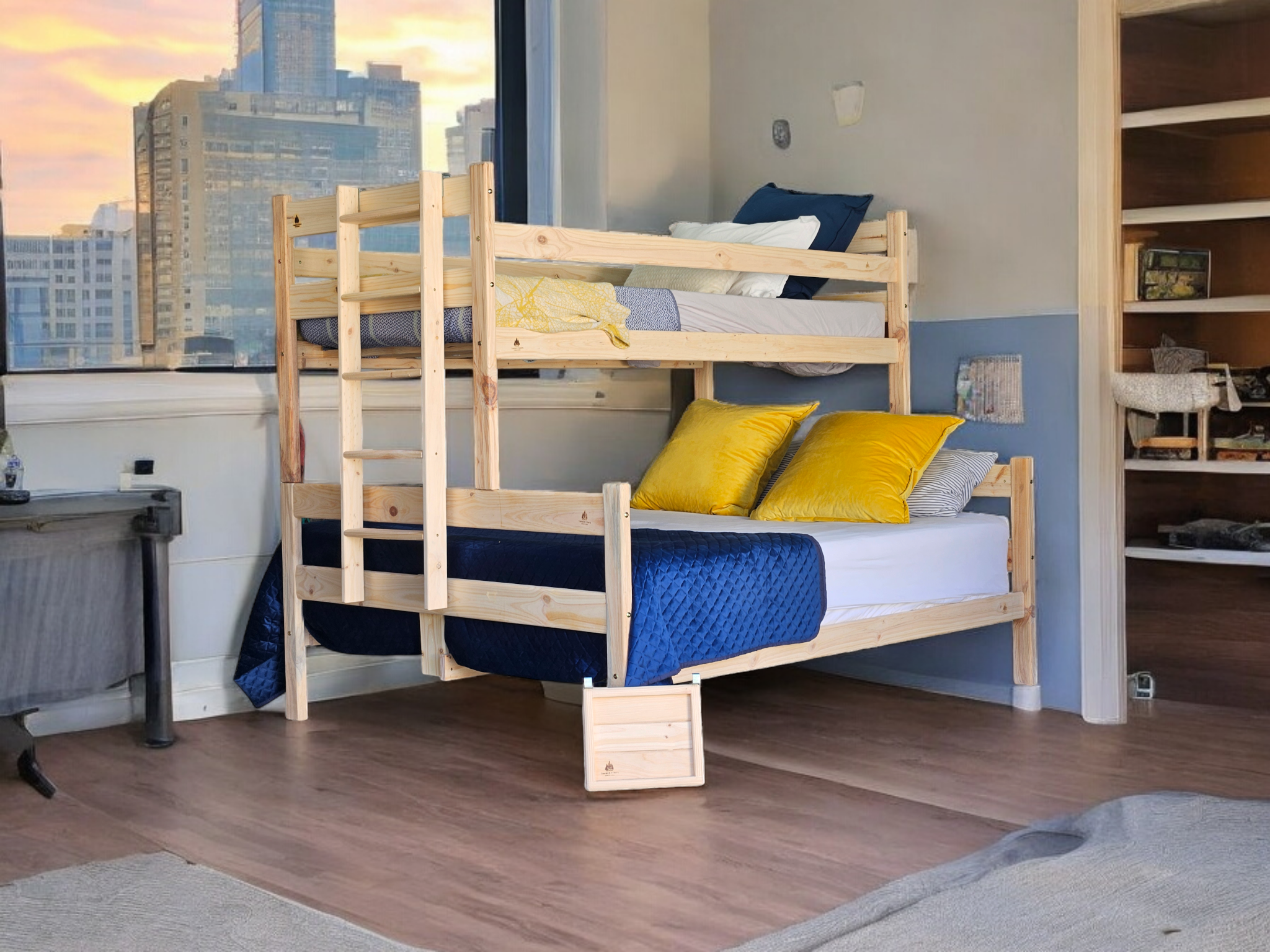 "Recently bought this bunk bed for our spare room, and I'm really impressed! We've had it for almost a month now, and every time I see it, I'm glad I made the purchase. The bunk looks fantastic in the room, and there's plenty of space underneath to store extra bedding and pillows. I’m a 90kg guy, and I spent a night on the top bunk with no complaints. The ladder holds my weight easily, and the hook-on table is perfect for keeping my phone close by while I sleep. Assembly was straightforward, especially considering how compact the box is. Five stars—it's nice to see a company that still takes pride in its craftsmanship!" - Jack