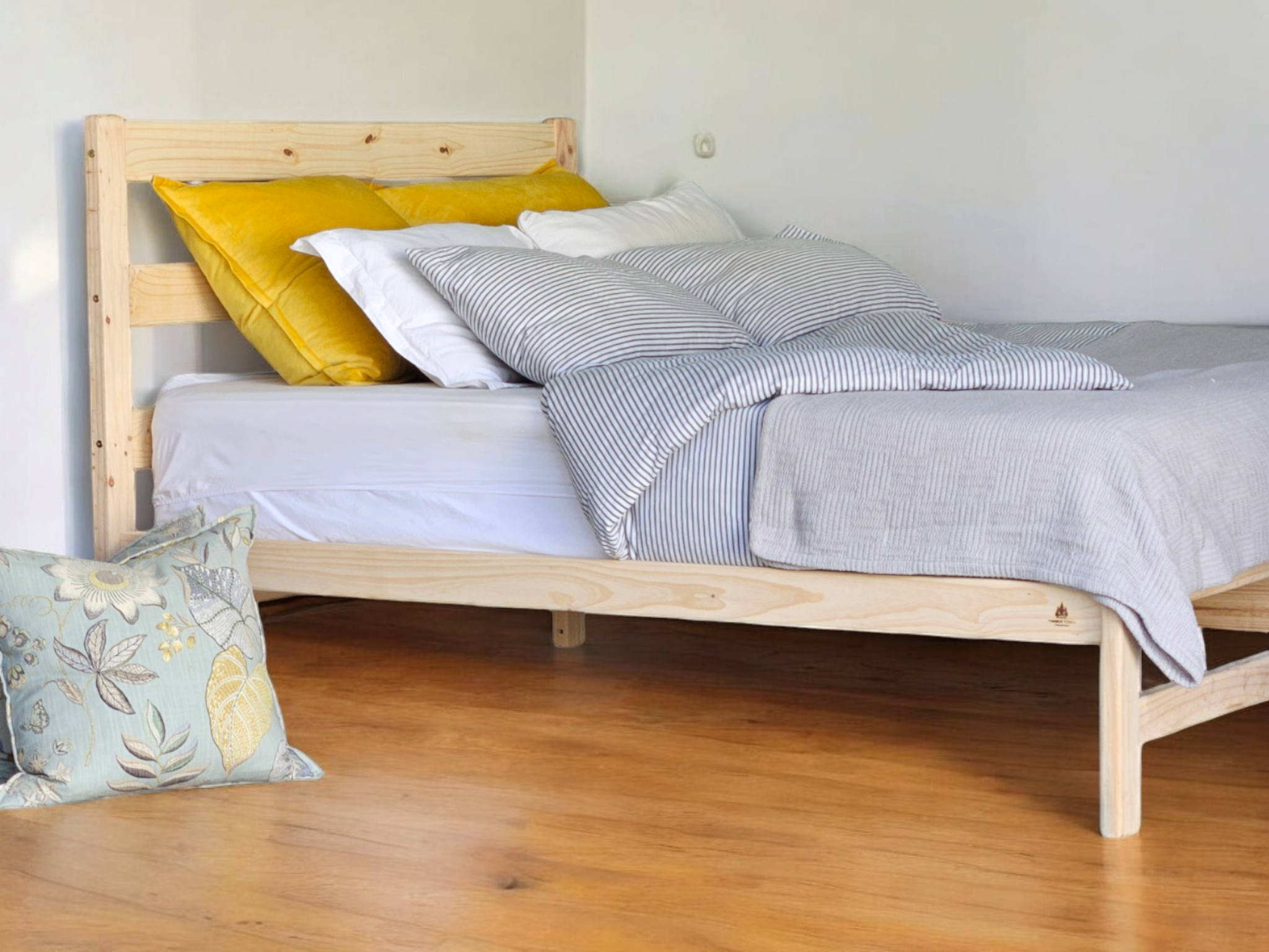 "This wooden bed base has exceeded my expectations in several ways.First, the craftsmanship is excellent, the wood is sturdy and well-finished, showcasing natural grains that add a touch of elegance to my bedroom. Assembly was straightforward, with clear instructions and all necessary hardware included." - Risuna
