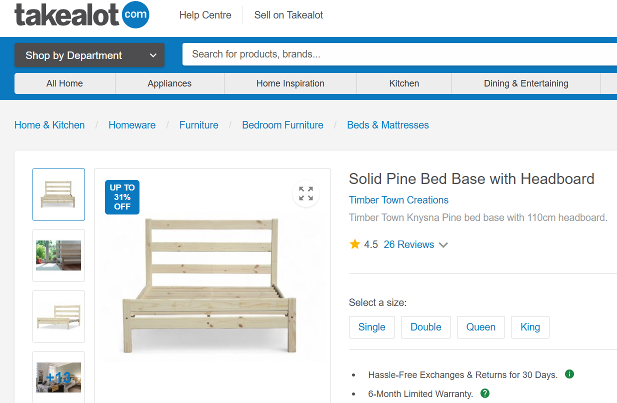Whether you're looking to enhance your bedroom or invest in a bed that will stand the test of time, the Timber Town Solid Pine Bed Base with Headboard is the perfect choice. Enjoy the warmth of Knysna pine and the quality craftsmanship that Timber Town is known for.