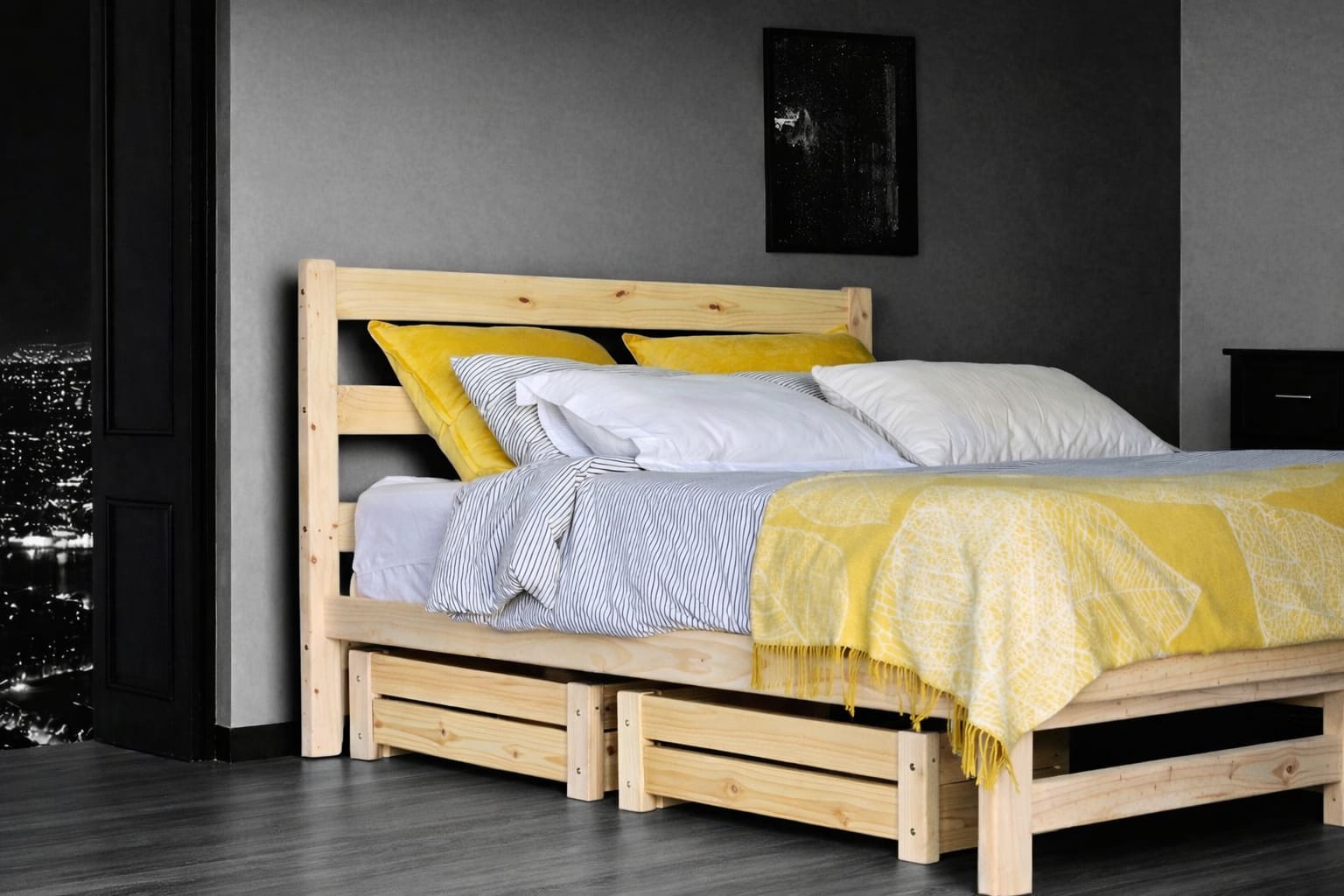 Crafted from solid pine, the trundle matches the clean, uniform look of our beds, creating a cohesive and intentional finish in your bedroom or living space. Two trundles can fit side by side under most of our bed bases, offering generous storage for shoes, extra linen, toys, games, or everyday essentials.